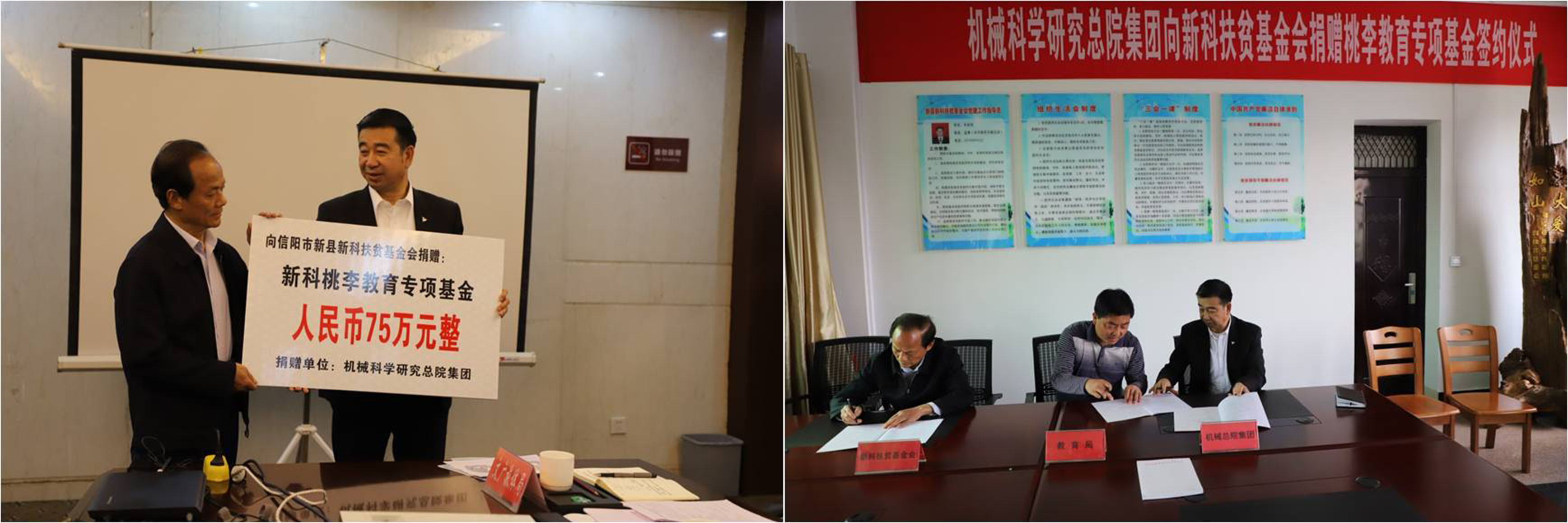 座談會(huì )后,機械總院集團向新科扶貧基金會(huì )捐贈75萬(wàn)元“新科桃李獎學(xué)金”。