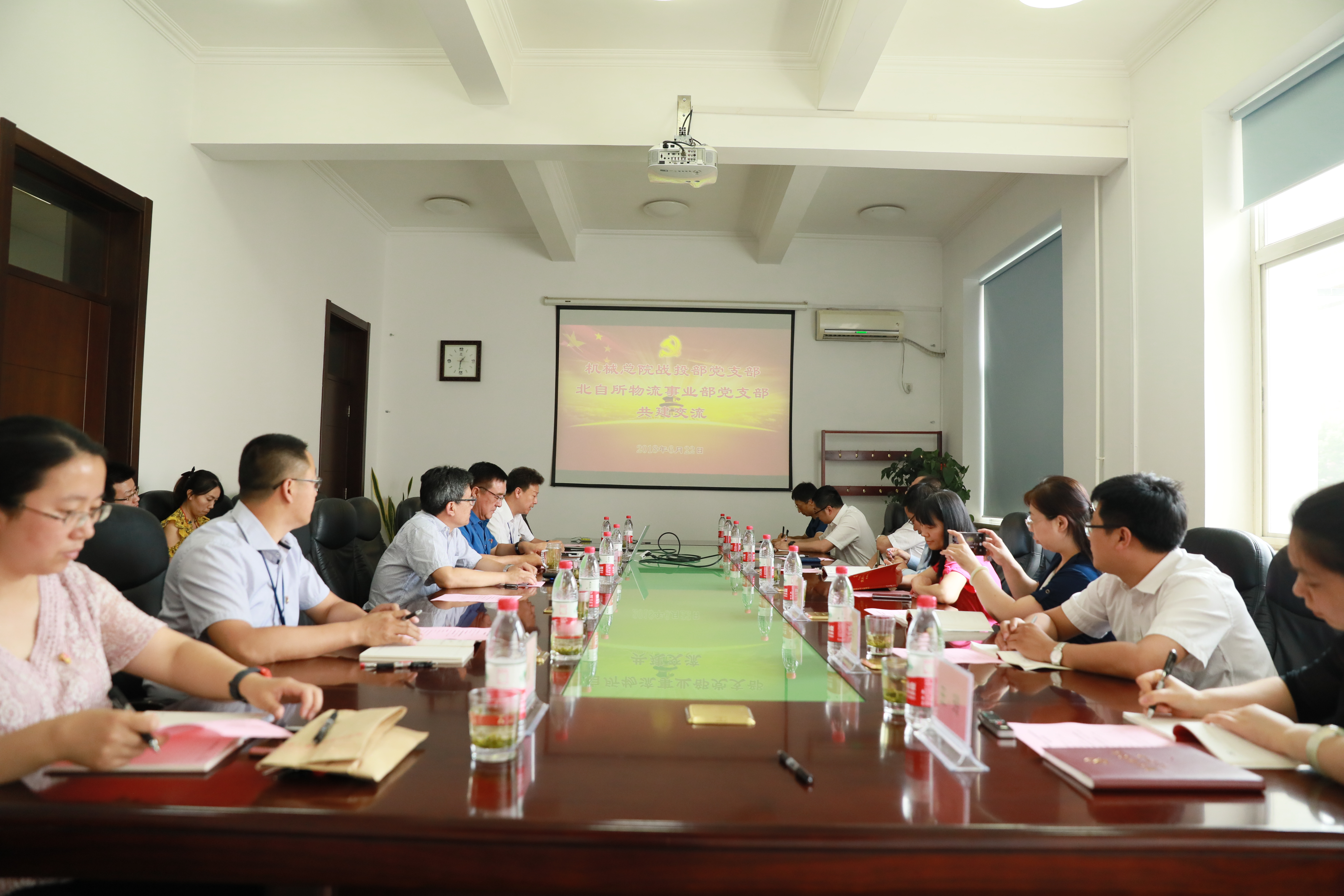 為認真學(xué)習貫徹黨的十九大精神,加強基層黨組織建設,強化學(xué)習交流,充分發(fā)揮黨建共建的互融互促作用,6月22日,戰略投資與運營(yíng)部黨支部與北自所物流事業(yè)部黨支部在北自所開(kāi)展共建交流活動(dòng)。機械總院集團黨委書(shū)記/董事長(cháng)/總經(jīng)理王德成、副總經(jīng)濟師兼戰略投資與運營(yíng)部部長(cháng)褚毅、戰略投資與運營(yíng)部黨支部書(shū)記/常務(wù)副部長(cháng)申海云,北自所董事長(cháng)/總經(jīng)理張入通、黨委書(shū)記王振林、物流中心副主任/黨支部書(shū)記王勇等近30人參加此次活動(dòng)。會(huì )議由物流中心黨支部書(shū)記王勇主持。